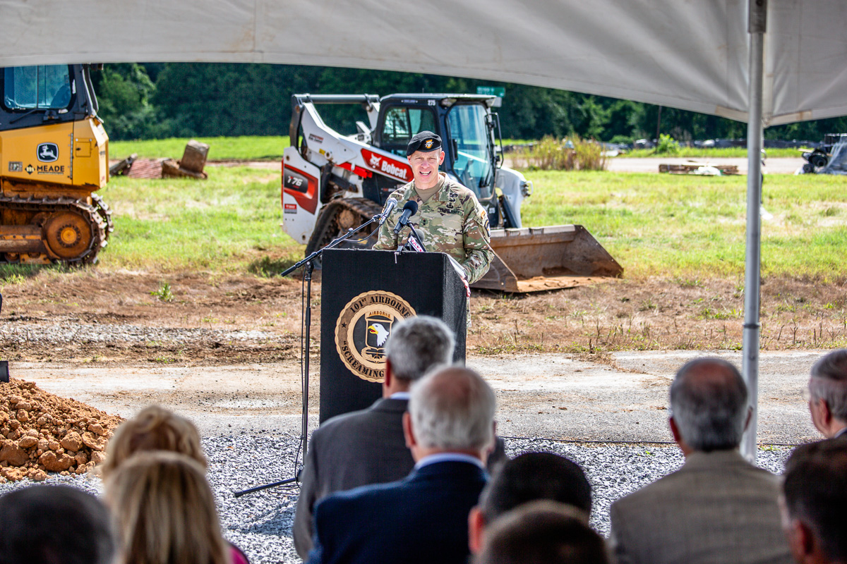 FORT CAMPBELL, KY (CLARKSVILLE NOW) – After years of planning and fundraising, Fort Campbell finally broke ground on the $40 million Tennessee Wings of Liberty Museum, set to open late next year. The museum will include a significant amount of Army equipment and exhibitions relating to the idea of vertical envelopment.
