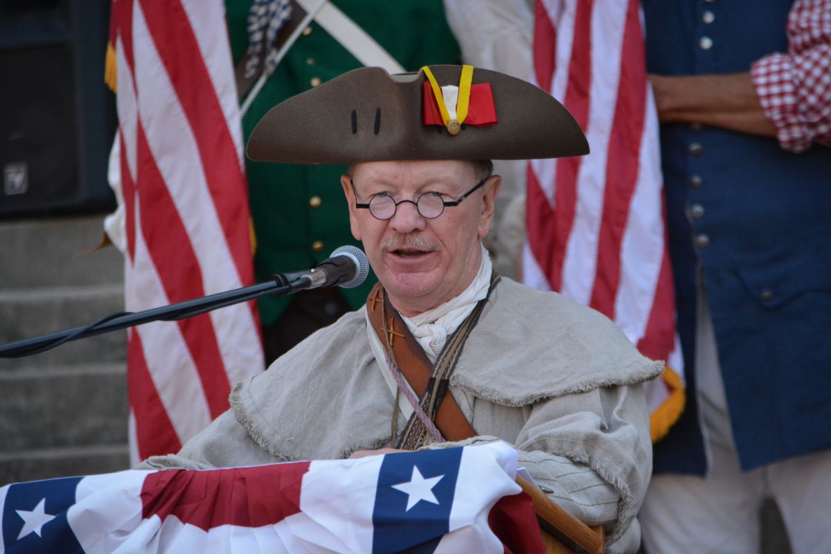The local event, which began in 2013, opened with the crowd joining in for the Pledge of Allegiance and the singing of the national anthem. There were many participants dressed in period clothing, and there was also the firing of a musket volley and firing of the cannon.